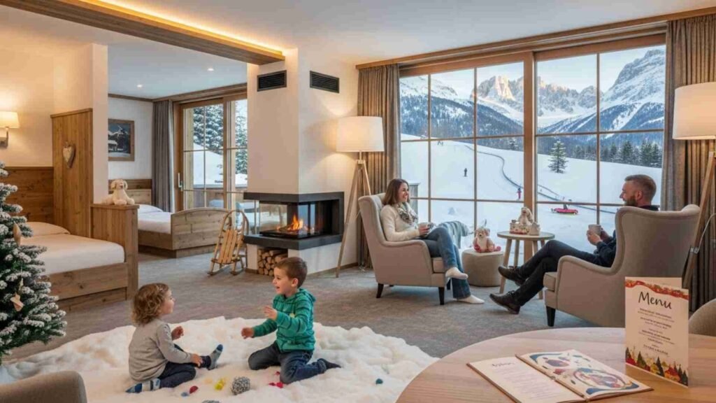 Accommodation plays a huge role in shaping the Alpe Di Siusi Family Sledding Winter experience. Family-friendly resorts in this region focus on comfort, warmth, and convenience. Rooms are often designed with families in mind, offering extra space, child beds, and cozy interiors that feel welcoming after a day in the snow.