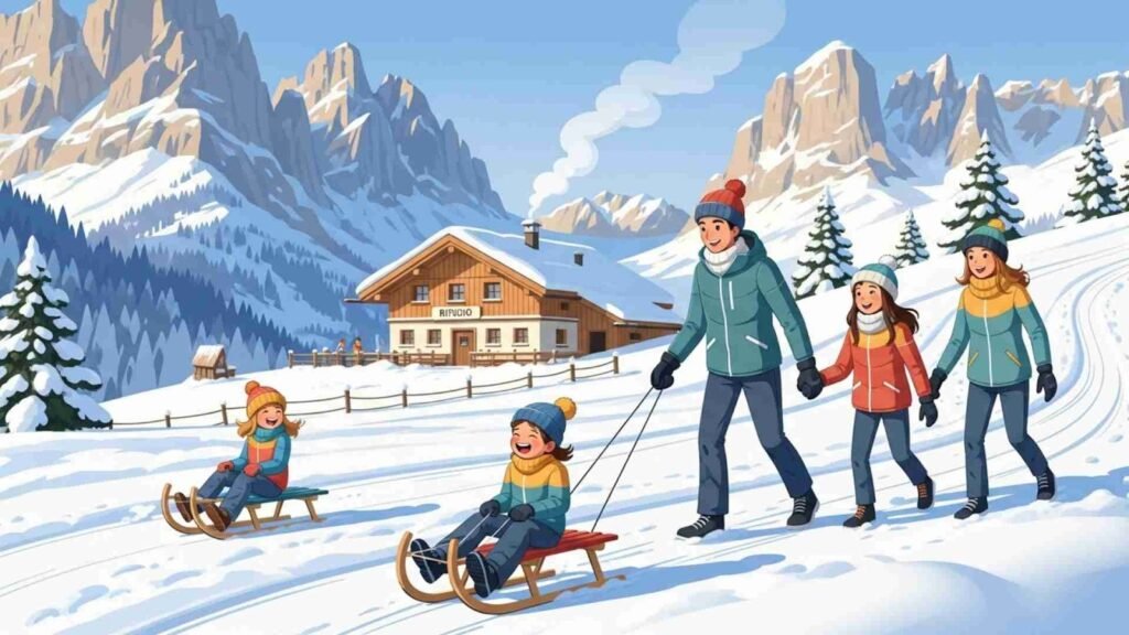 Parents love Alpe di Siusi because it feels calm and organized. There’s less crowding compared to larger ski hubs, and everything is designed to be accessible. Children feel comfortable trying sledding for the first time, while parents can relax knowing that routes are clearly marked and carefully managed. This balance is exactly what families look for when comparing winter destinations.