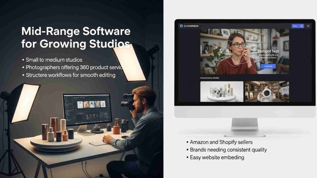 This is where most sellers find the Best 360 Product Photography Software. Mid-range tools offer the perfect mix of power, editing features, automation, and affordability. They’re ideal for growing eCommerce stores, small studios, photographers offering 360 services, and brands looking to upgrade their visuals without jumping into enterprise-level pricing.