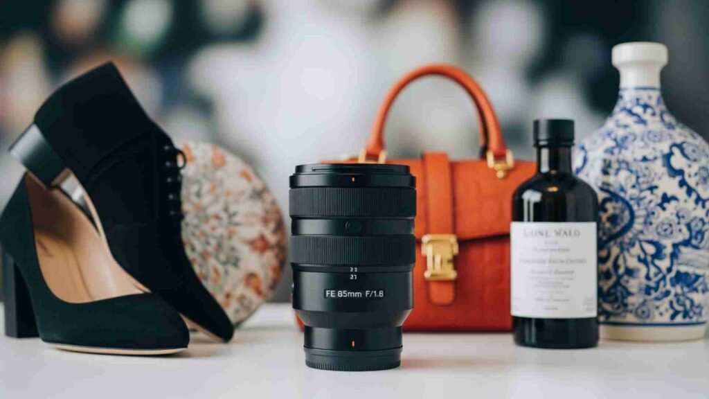You can’t shoot true macro with it, but for medium-sized products like shoes, handbags, ceramics, or this lens gives an editorial vibe that feels premium. Many commercial photographers use it for hero shots because the bokeh and depth look extremely professional.