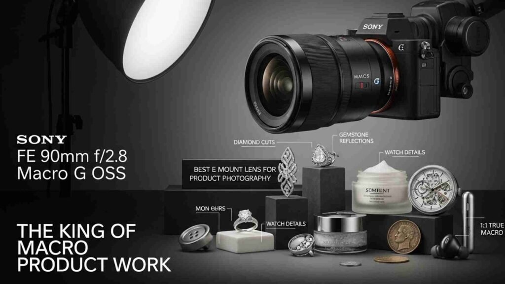 If there’s one lens almost every expert recommends as the Best E Mount Lens for Product Photography, it’s the Sony FE 90mm f/2.8 Macro G OSS.