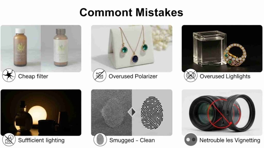 Even after selecting the Best Filter for Product Photography, many photographers make mistakes that limit the quality of their images. Avoiding these common issues will save you time and help you produce consistent, professional-looking product photos.