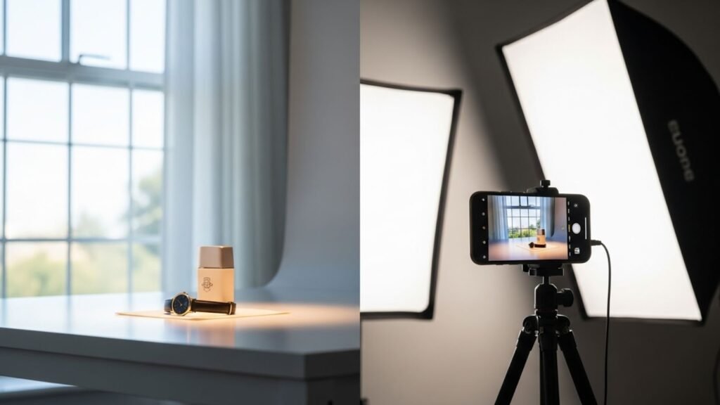 For small items, consider using a light tent or a foldable shooting box. This setup creates even, soft light around the product and eliminates distracting background elements. Combined with the Best iPhone Settings for Product Photography, these lighting hacks help you achieve clean, high-quality images suitable for professional listings.