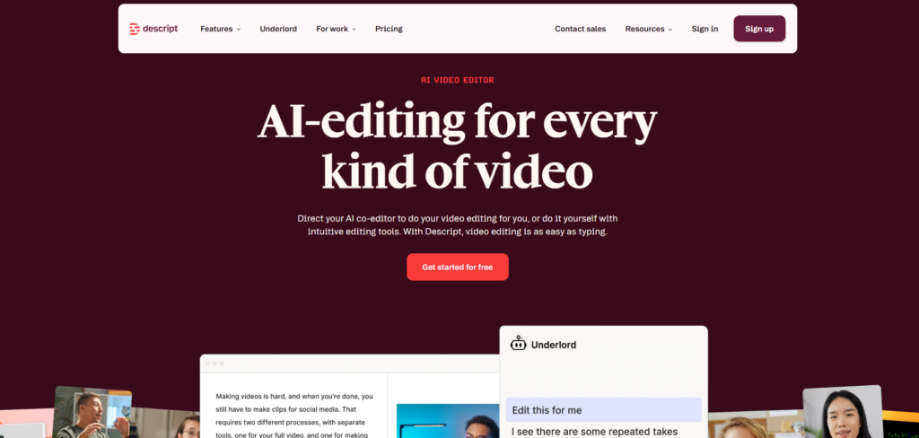 Descript brings a completely different approach to video editing, and that’s exactly why it earns a spot among the Best UGC Video Makers for Creating YouTube Shorts. Instead of working on a traditional timeline, you edit your video by editing text-just like a document.