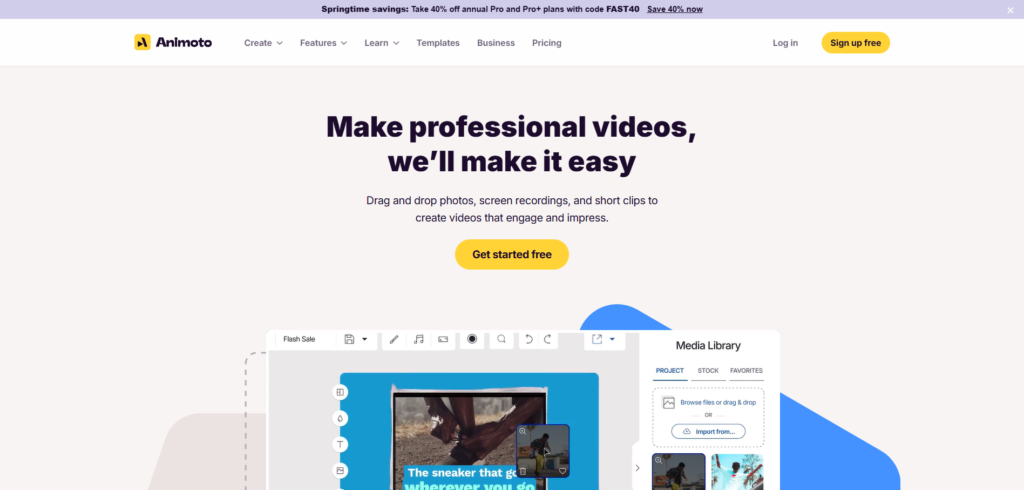 Animoto focuses on simplicity, making it one of the Best UGC Video Makers for Creating YouTube Shorts for beginners and small businesses.