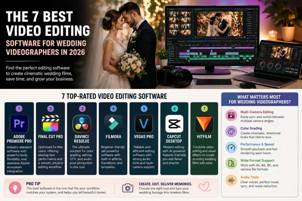In 2026, video editing tools have become more powerful, faster, and smarter than ever before. With AI-assisted workflows, real-time rendering, and advanced color grading capabilities, wedding videographers now have more creative control and efficiency than ever. But with so many options available, choosing the right one can feel overwhelming.
