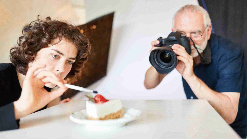 Another advanced trick is working with motion. Capture someone sprinkling salt, pouring soup into a bowl, or adding a garnish just before the shot. These dynamic touches bring life to static food photography and help create a narrative.