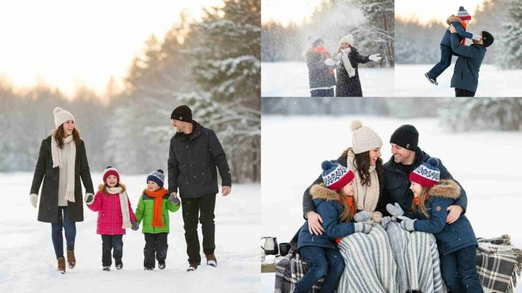 Styling plays a huge role in the success of a Family Winter Photo Shoot. Winter fashion offers endless creative opportunities with layers, textures, and colors. Neutral tones such as beige, cream, gray, and soft brown look elegant against snow. Earthy shades like forest green, rust, mustard, and burgundy add warmth and richness to the scene.