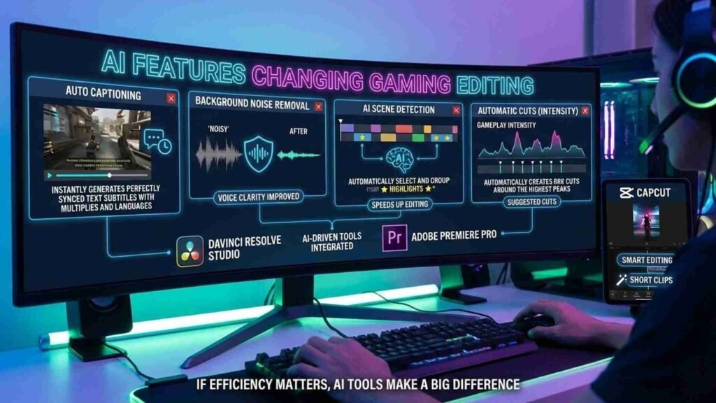 Auto captioning saves hours of work. Background noise removal improves voice clarity. AI scene detection speeds up highlight editing. Some tools even suggest automatic cuts based on gameplay intensity.