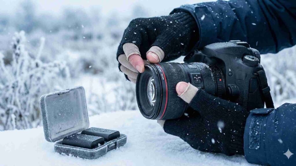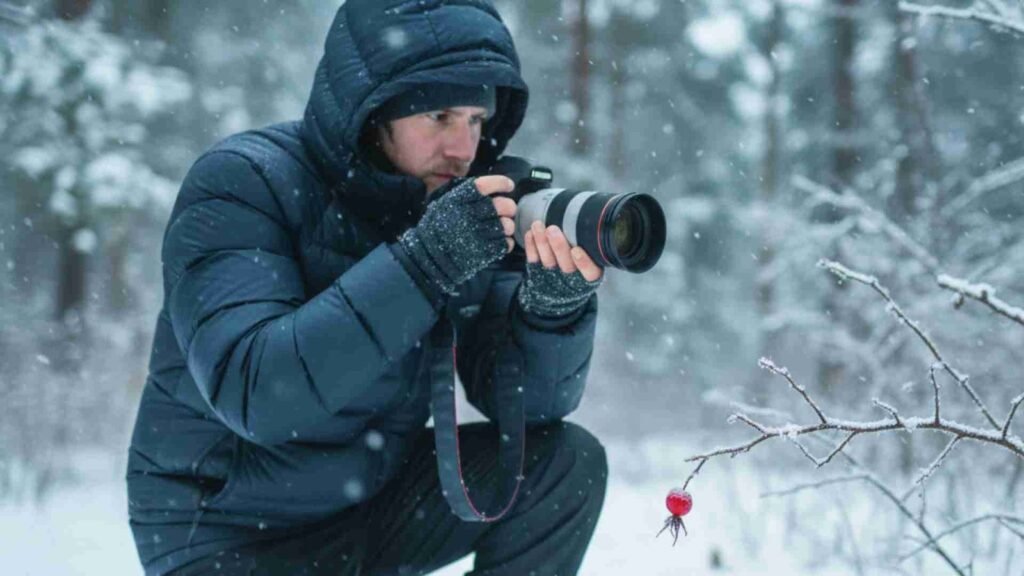 Your hands are also crucial tools in macro photography in winter. Thick gloves keep you warm, but make it harder to adjust tiny camera controls. Many photographers use thin inner gloves with removable fingertips to balance warmth and control. Staying comfortable helps you stay creative for longer periods.