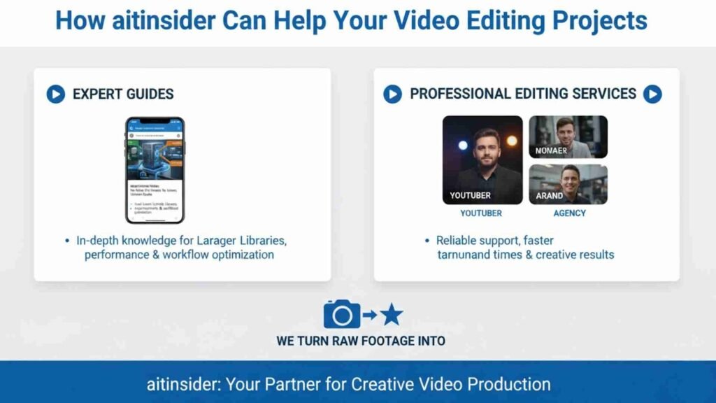At aitinsider, we understand the challenges video editors face every day. Storage, performance, and workflow optimization are critical parts of successful video production. That’s why we not only share expert guides like this one but also provide professional Video Editing services tailored to your needs.