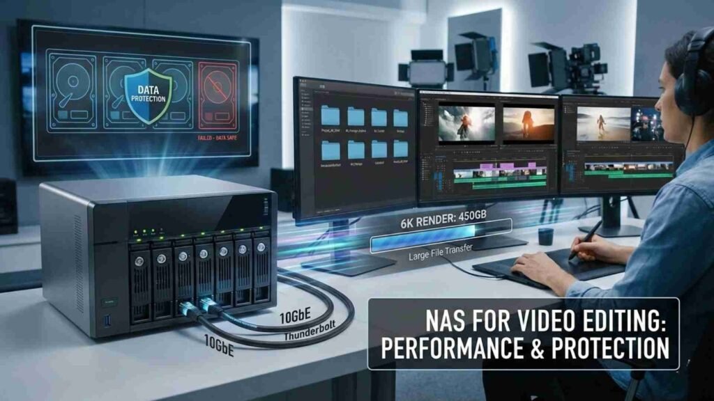 Another big advantage of Nas for Video Editing is data protection. Losing footage can mean losing money, time, and client trust. NAS systems are designed with redundancy, meaning if one drive fails, your data stays safe. This is a huge relief for professionals who cannot afford downtime.