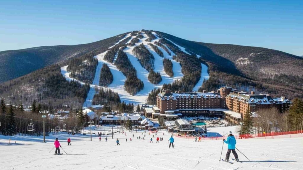 After a day outdoors, families enjoy indoor swimming, arcade games, and cozy restaurants. Mount Snow delivers variety without overwhelming guests, making it a solid choice for your next New England Winter Family Vacations.