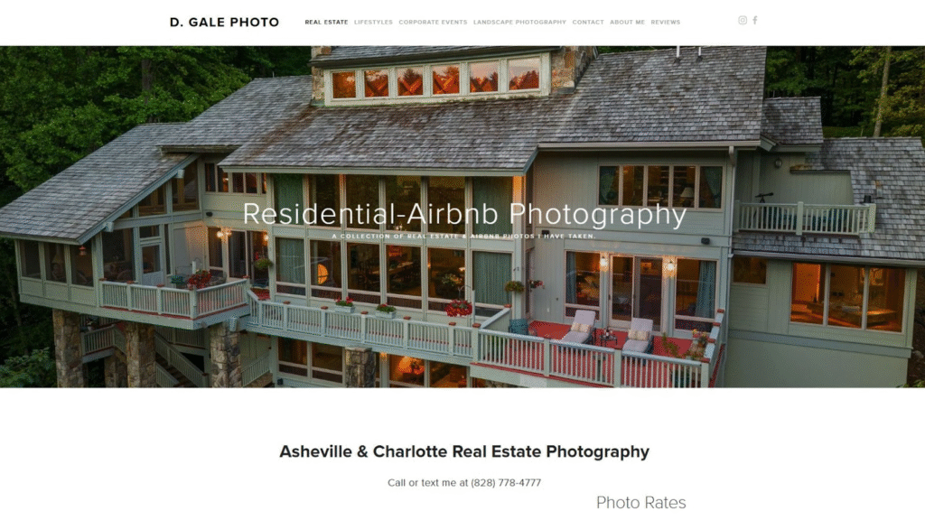 Covering both Asheville and Charlotte, D. Gale Photo provides real estate, Airbnb, and commercial photography. Their versatility makes them a solid option for agents juggling varied property types.