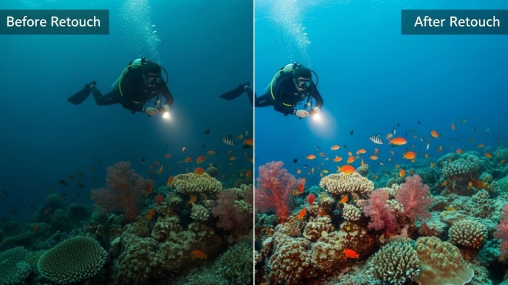 For professionals, retouching directly impacts brand presentation. When clients see crystal-clear, color-balanced images, they associate your brand with quality and reliability. In industries like travel, fashion, or diving, visuals are everything. Your images are your first impression, and retouched photos help you stand out in a competitive marketplace.