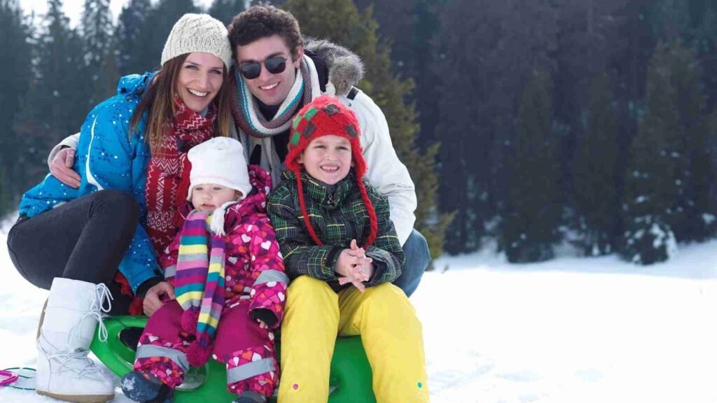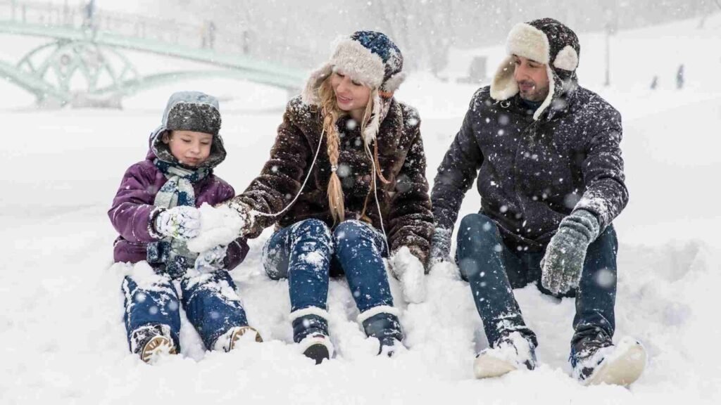 One of the most loved winter family photo color schemes of 2025 is the neutral cream palette. Shades like ivory, oatmeal, light beige, and soft white create a dreamy, cozy, and elegant look-especially for snowy outdoor shoots.