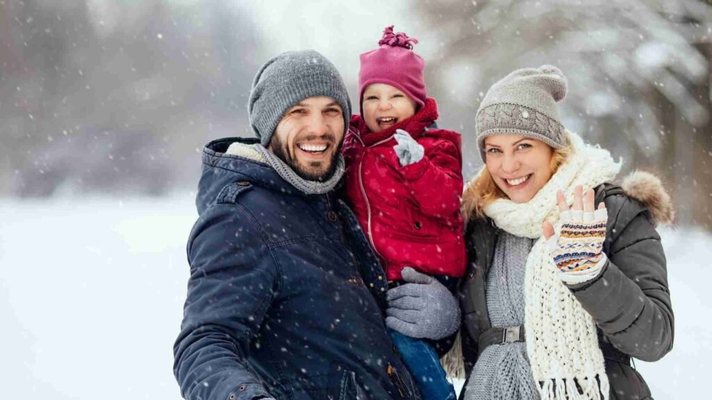 For families wanting a warm, autumn-inspired winter look, rust and burnt orange are wonderful choices. These tones add warmth and depth to winter scenes, especially when snow is present. Cream or soft white balances the palette and keeps it from feeling too bold.