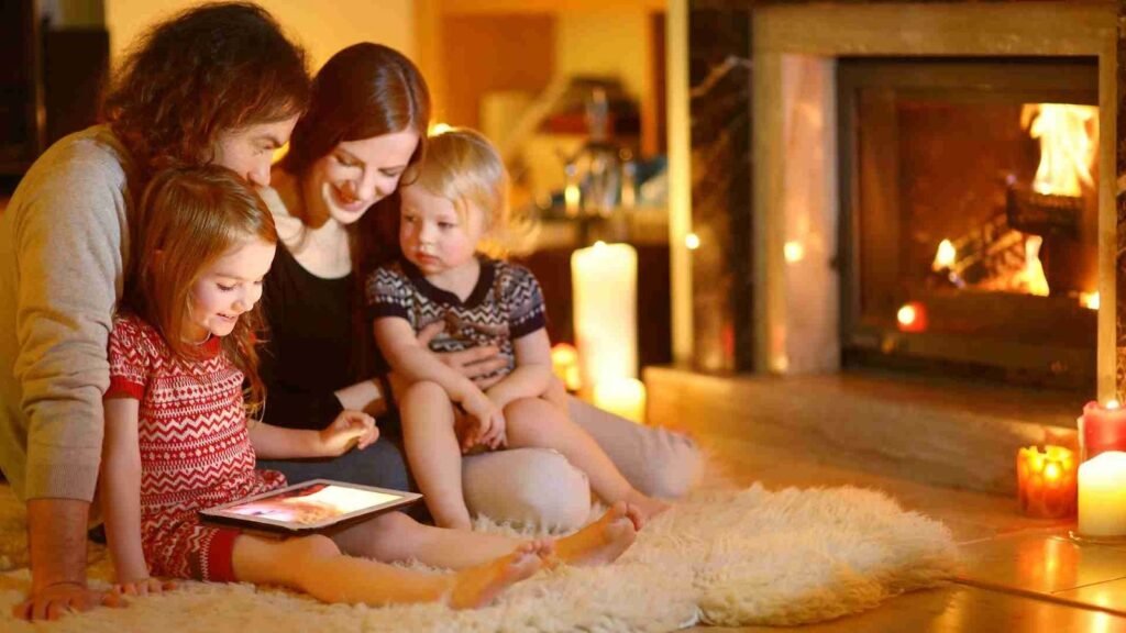 Imagine kids in dark green sweaters, parents in burgundy or navy wool coats, and neutral accessories to balance everything. This combination adds depth without overwhelming the scene.